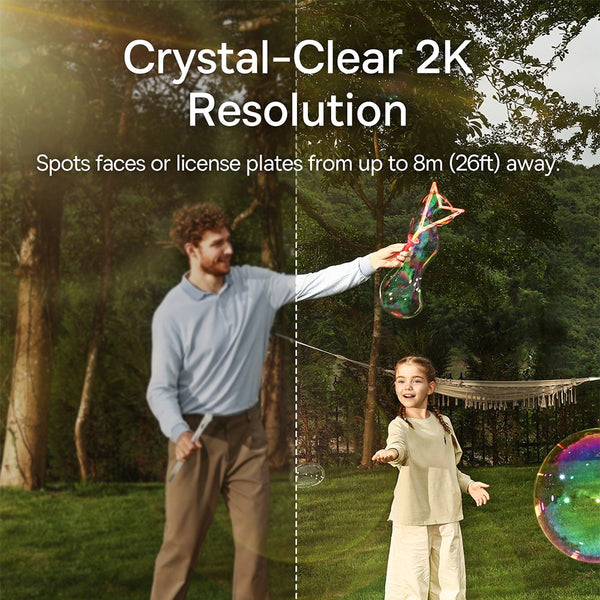 -【2K Resolution + 135° Wide View】 See every detail with crisp 2K clarity, wide-angle view, and 8× zoom for enhanced surveillance coverage.